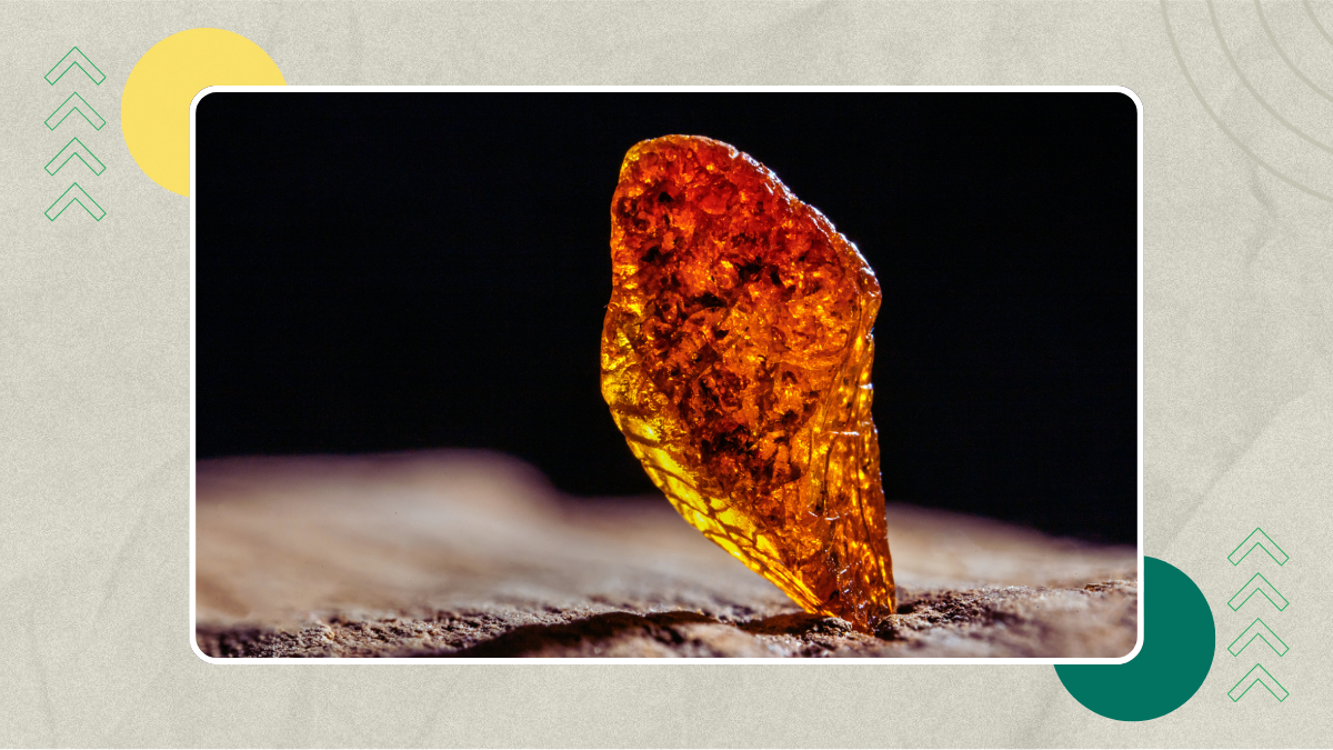 يظهر الكهرمان آثار لحاء أشجار وبذور دقيقة، مما يعيد رسم ملامح بيئية دافئة.