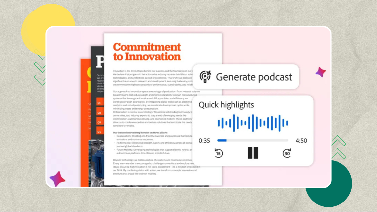 Adobe Acrobat يستعين بالذكاء الاصطناعي لتحويل ملفات PDF إلى بودكاست