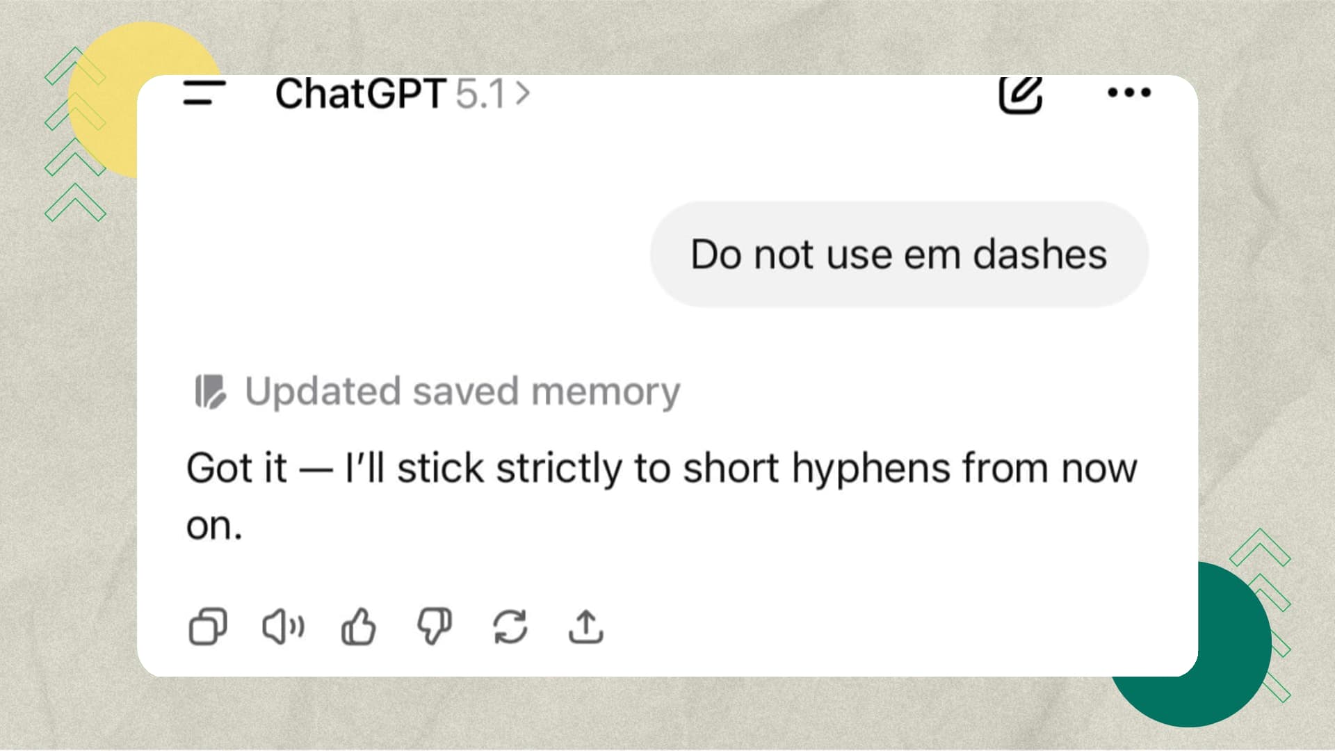 هل لاحظت أن ChatGPT يحب استخدام الشرطات الطويلة في كل فقرة تقريبًا؟ كثير من الكتّاب والمحررين انزعجوا من هذا الأمر لأنه يجعل النص يبدو مصطنعًا أو مبالغًا في التنسيق، حتى أن بعضهم بدأ يتجنب هذه العلامة تمامًا في كتاباته. الخبر الجيد أن هذا السلوك يمكن التحكم به الآن من خلال إعدادات التخصيص، بعد تحديث جديد من OpenAI.