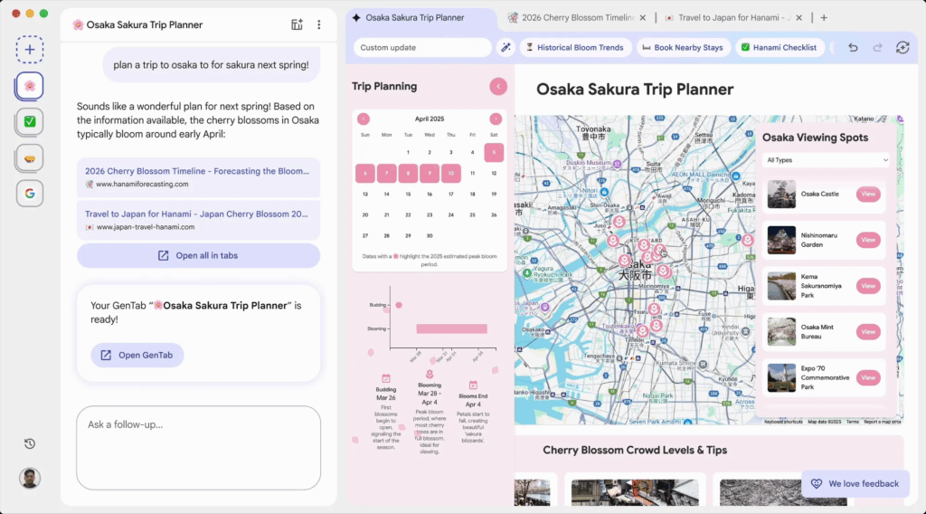 ميزة GenTabs تسمح للمستخدم بفتح علامات تبويب متنوعة تلقائيًا عن كل مهمة يطلبها.