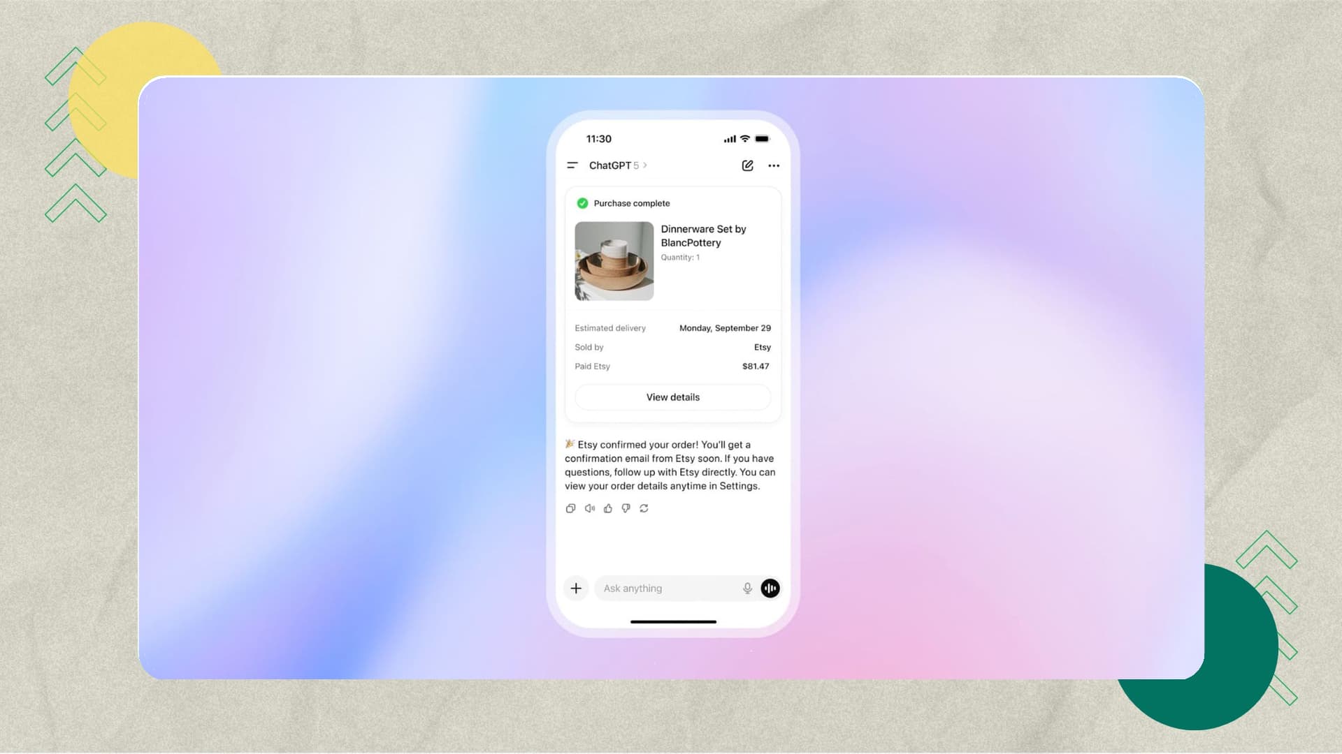 الميزة الجديدة ستبدأ عبر شراكات مع بائعي Etsy، على أن يتم لاحقًا دمجها مع أكثر من مليون متجر على Shopify بما يشمل علامات تجارية بارزة مثل Glossier وSkims وSpanx. وعند سؤال المستخدم عن منتج محدد - مثل "أفضل حذاء رياضي بسعر أقل من 150 دولارًا" - سيقترح ChatGPT منتجات ملائمة، مع خيار الضغط على زر "شراء" لإكمال العملية مباشرة داخل الواجهة، باستخدام البطاقة المسجلة مسبقًا أو طرق دفع أخرى.