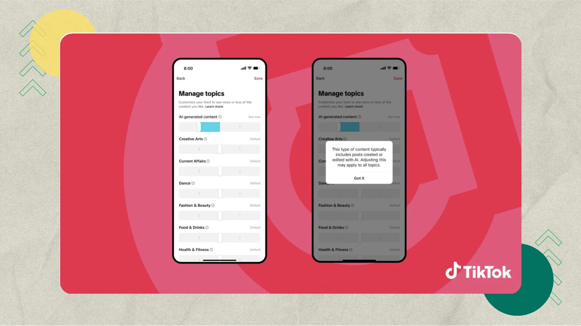 يتيح تيك توك الآن التحكم في ظهور المحتوى الناتج عن الذكاء الاصطناعي على صفحتك.